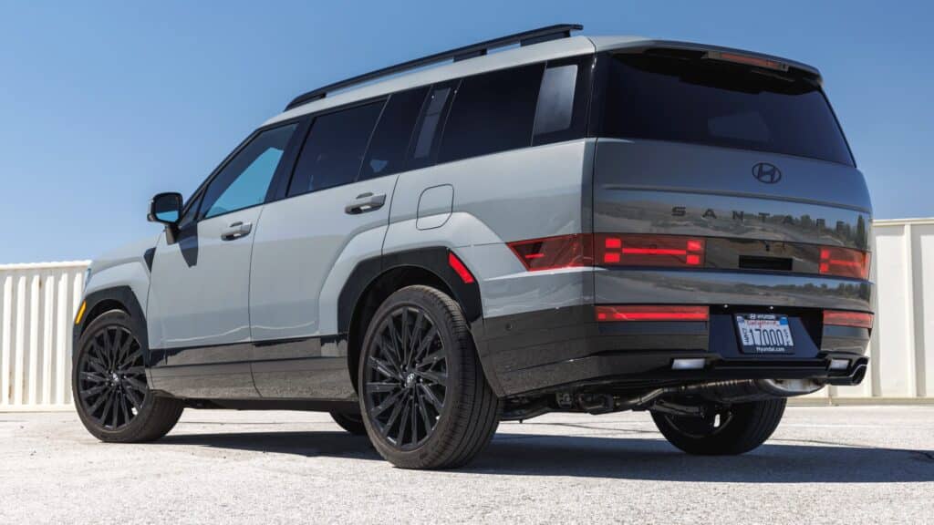 Hyundai đã chọn hướng đi mới cho Santa Fe 2026, với triết lý thiết kế “H-shaped design” thể hiện ở cả đầu xe và đuôi xe.