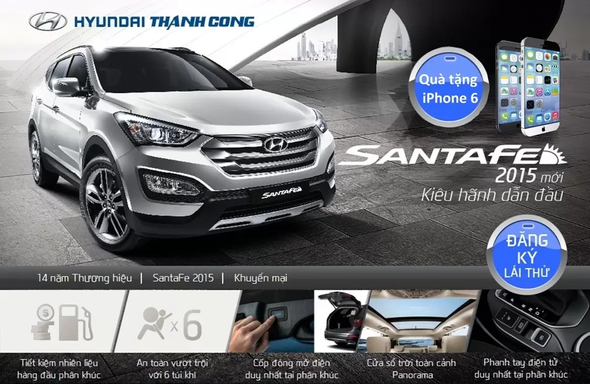 Tên chương trình : Giới thiệu SantaFe 2015, tặng quà iPhone 6 khi khách hàng mua xe.